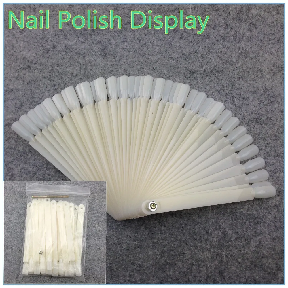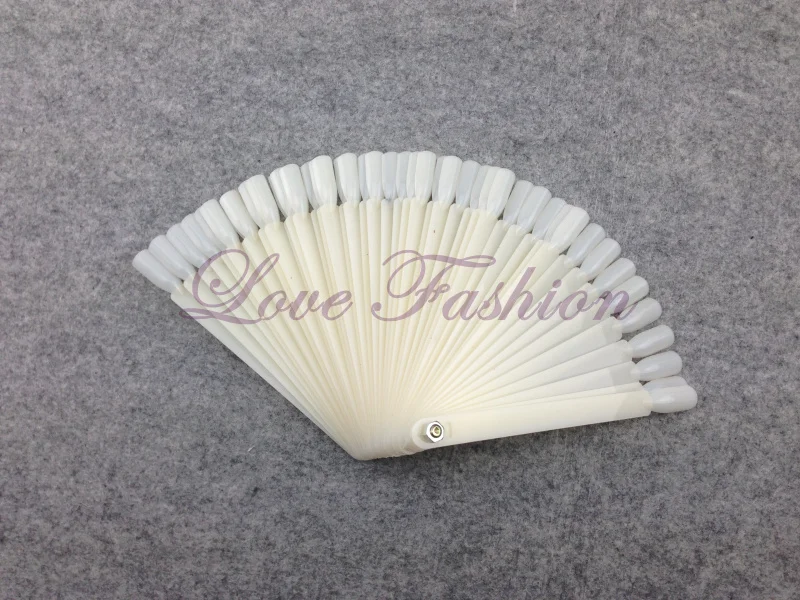 Hot Sale WUF 50Pcs Natural White False Nail Art Tips Sticks Polish Display Fan Practice Tool Board Nails Too