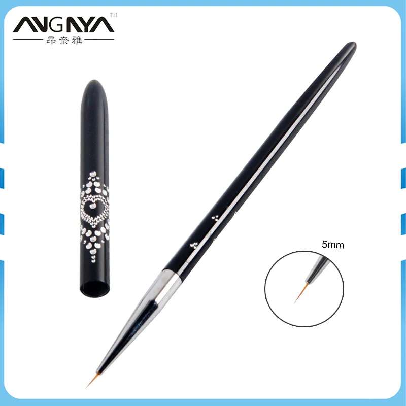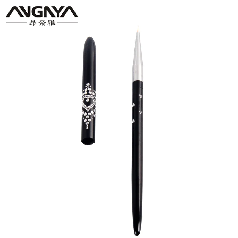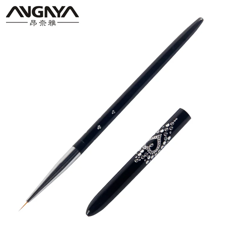 ANGNYA 7/9/11mm Nail Art Brush Painting Drawing Line Pen Crystal Black Metal Acrylic UV Gel Polish Tip Design Tool Manicure A086