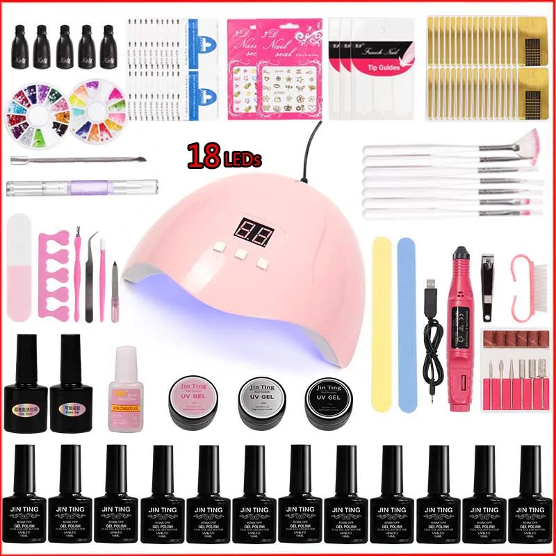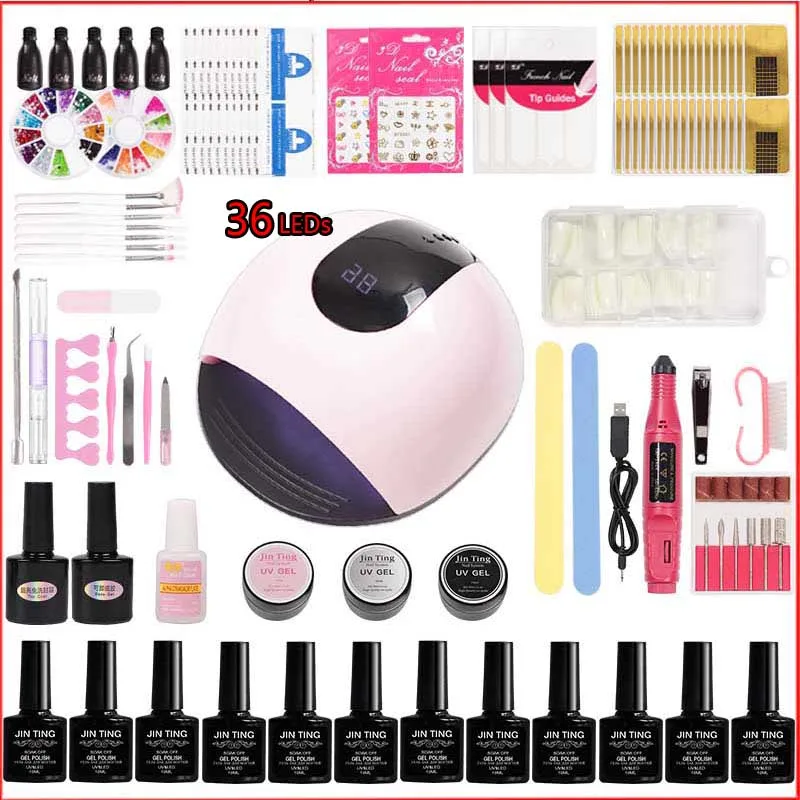 Nail Lamp 18/36 lamp beads Led Dryer Gel Extension Kit Acrylic 12 Color Gel Electric Nail Machine Manicure Handle Set Drill Bit